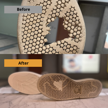 元の履き心地をできるだけ再現しながら、新品のような靴底に再生。